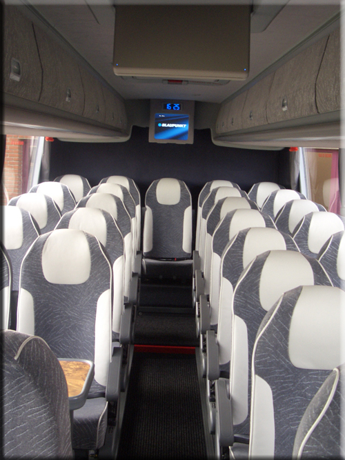 53 sièges inclinables ; 1 table ; sellerie tissu ; tétières cuir